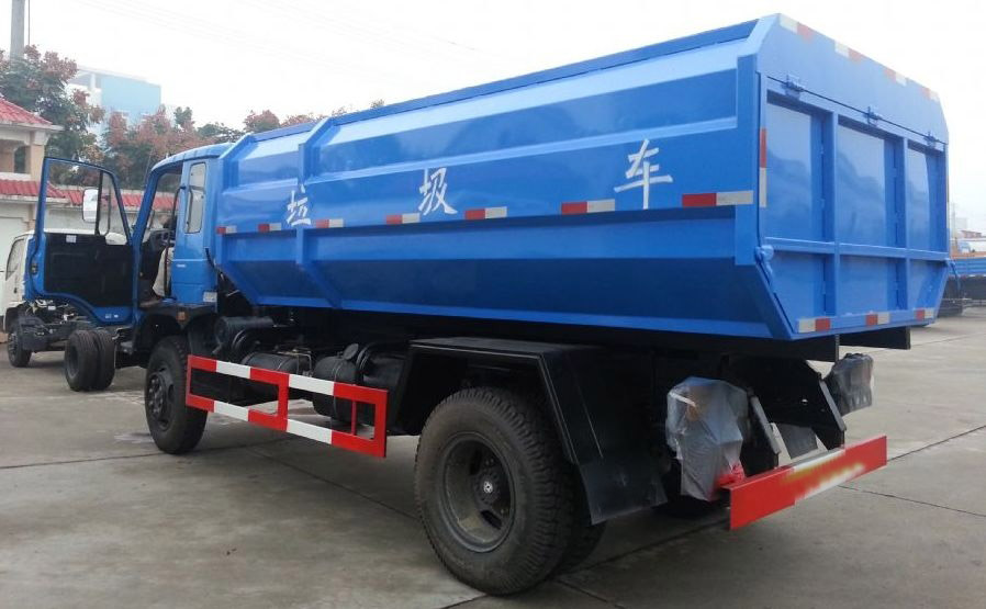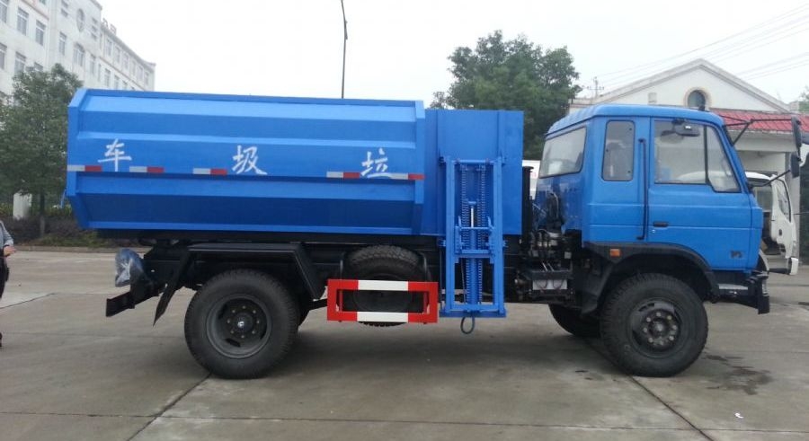 工作原理:自裝卸式垃圾車是由密封式垃圾廂、液壓系統、操作系統組成,能配幾十個垃圾桶,實現一車與多個垃圾桶聯合作業,廂體上的液壓升降裝置可將垃圾桶吊上、放下,上下升降,上下一次工作循環時間為50S,密封式廂體環保衛生,可避免二次污染。其自裝式的掛桶裝置可直接將路邊的垃圾桶掛在上面用提升機直接到在垃圾箱體里面省去了裝垃圾的麻煩。