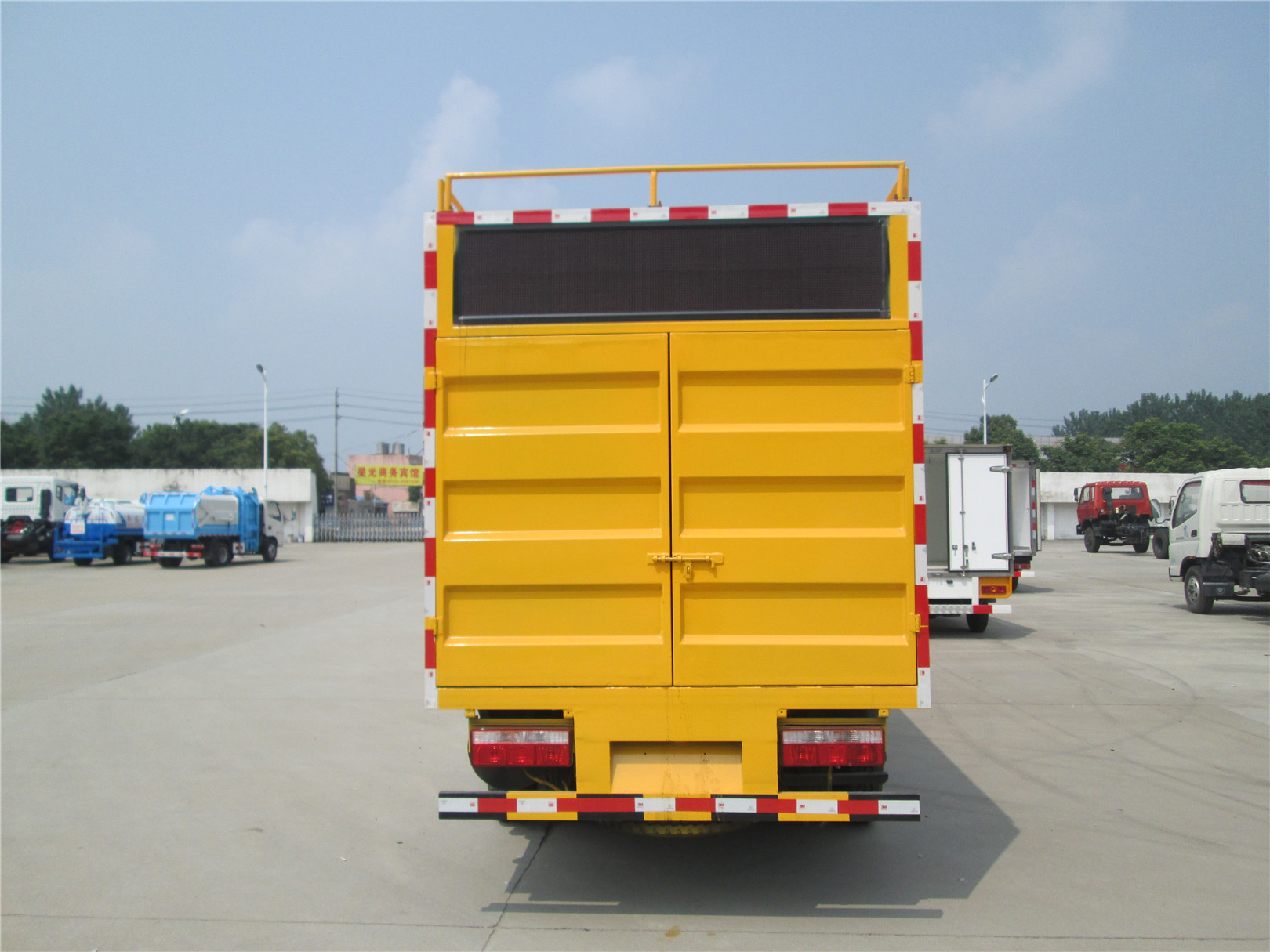 選裝前面罩以及前霧燈.防護材料:Q235A碳鋼,連接方式:左右側面均與箱體底面采用焊接連接, 后部防護與車架采用焊接連接,后防護斷面尺寸(mm):50×100,后部防護離地高度(mm):360.ABS廠家及型號:襄陽東風隆誠機械有限責任公司/ABS/ASR-24V-4S/4M.整車長/軸距對應關系為(mm):5995/3308,5487/2800.專用裝置名稱:糞污固液分離機,真空泵,減速機,電動機,發電機組;專用裝置型號:XBD5.3/15-100L,2BV5111,BXWD6,YE21325-4,YE2-108M-4;專用裝置生產企業:藍科流體科技有限公司,淄博博山美卓真空泵制造廠,上海浦南減速器總廠,大連恒通電機制造有限公司,上海源力電機制造有限公司;該車用于污水處理.