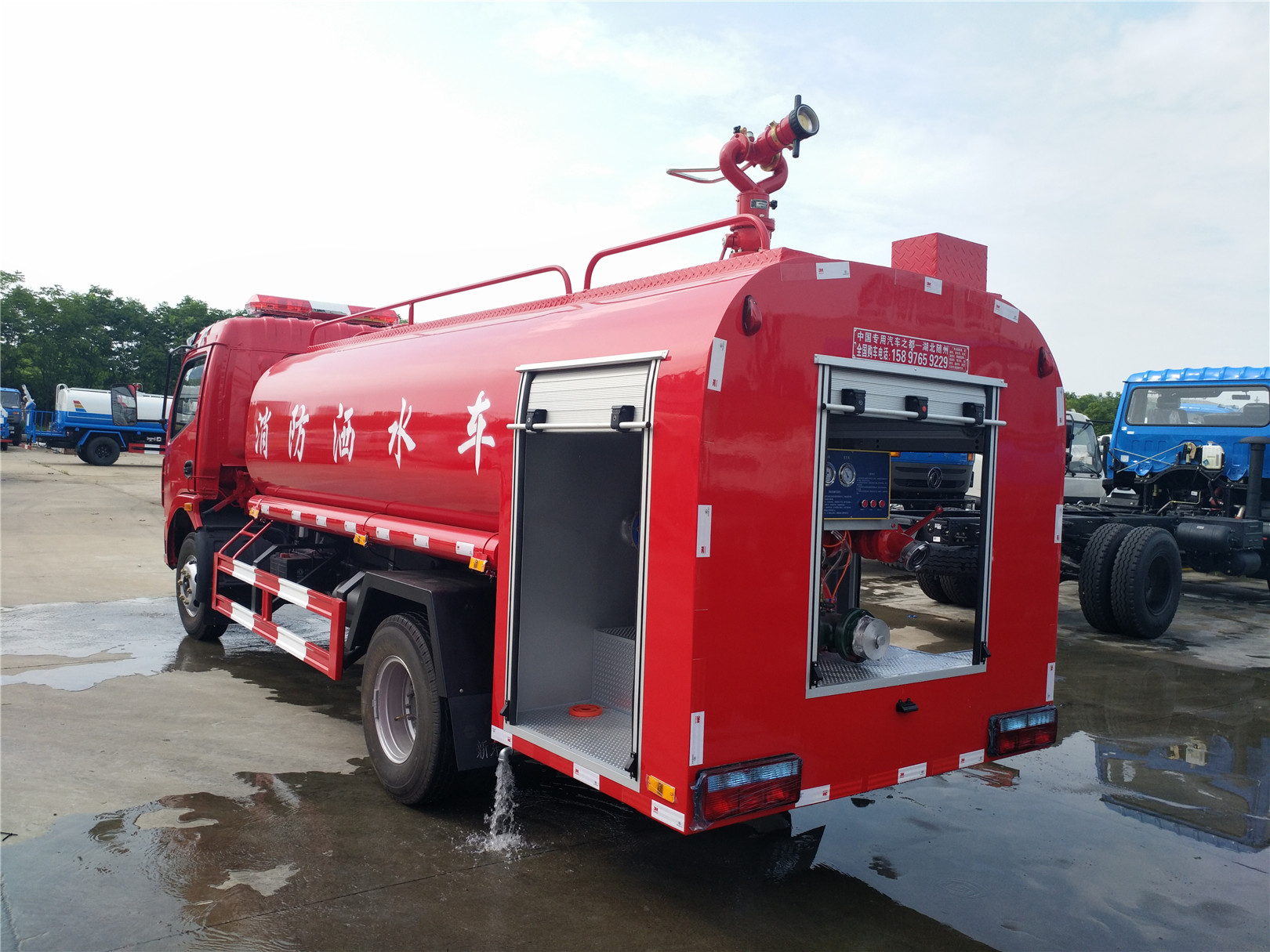 消防車又名:滅火車、救火車、水罐消防車。采用二類載貨汽車底盤改裝而成,專用部分由液罐、泵室、器材箱、動(dòng)力輸出及傳動(dòng)系統(tǒng)、管路系統(tǒng)、電氣系統(tǒng)等 組成,廣泛適用于城鎮(zhèn)公安消防隊(duì)、石油化工、廠礦企業(yè)、森林、港口、碼頭等部門,可迅速接近火場(chǎng)展開(kāi)滅火戰(zhàn)斗,撲救各種火災(zāi) ,是理想的消防裝備。