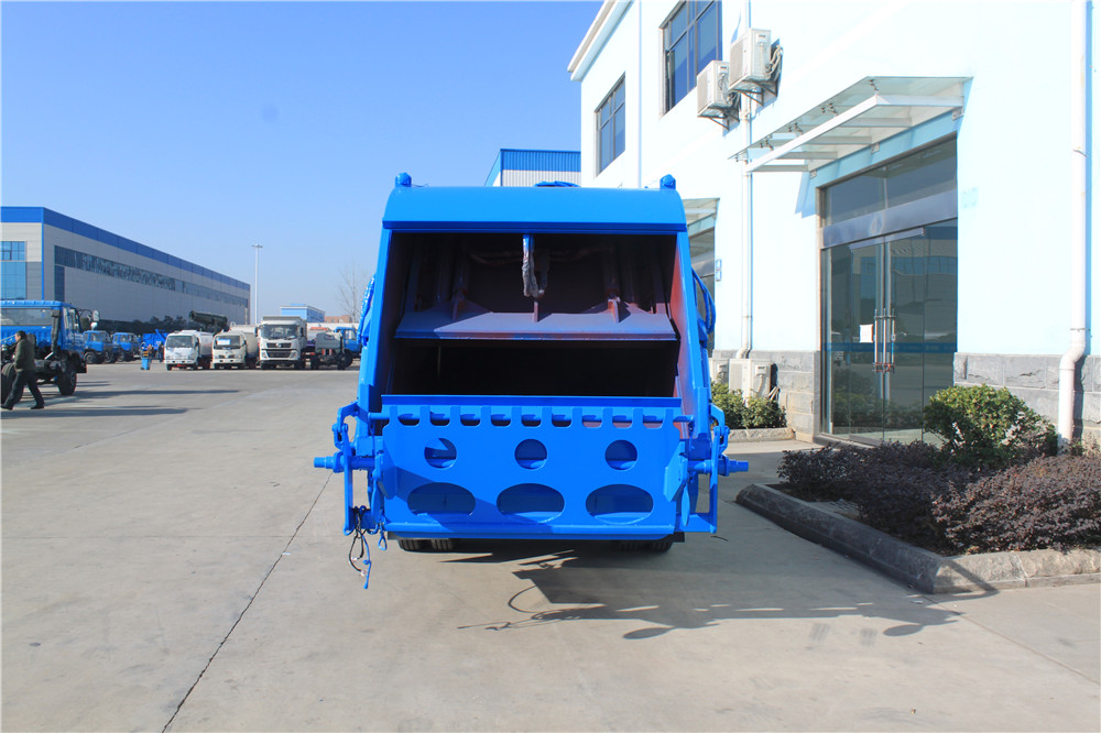 ⑨ 方便的操作控制 作業控制盒分別安裝在駕駛室內和車尾,駕駛室內的作業控制盒可控制推擠卸料和選擇操作模式(如自動或手動),車尾的作業控制盒則控制壓填機構和翻桶機構的作業,使用操作十分方便。特別是在垃圾填埋場,作業人員無須下車即可完成卸料和污水排放。